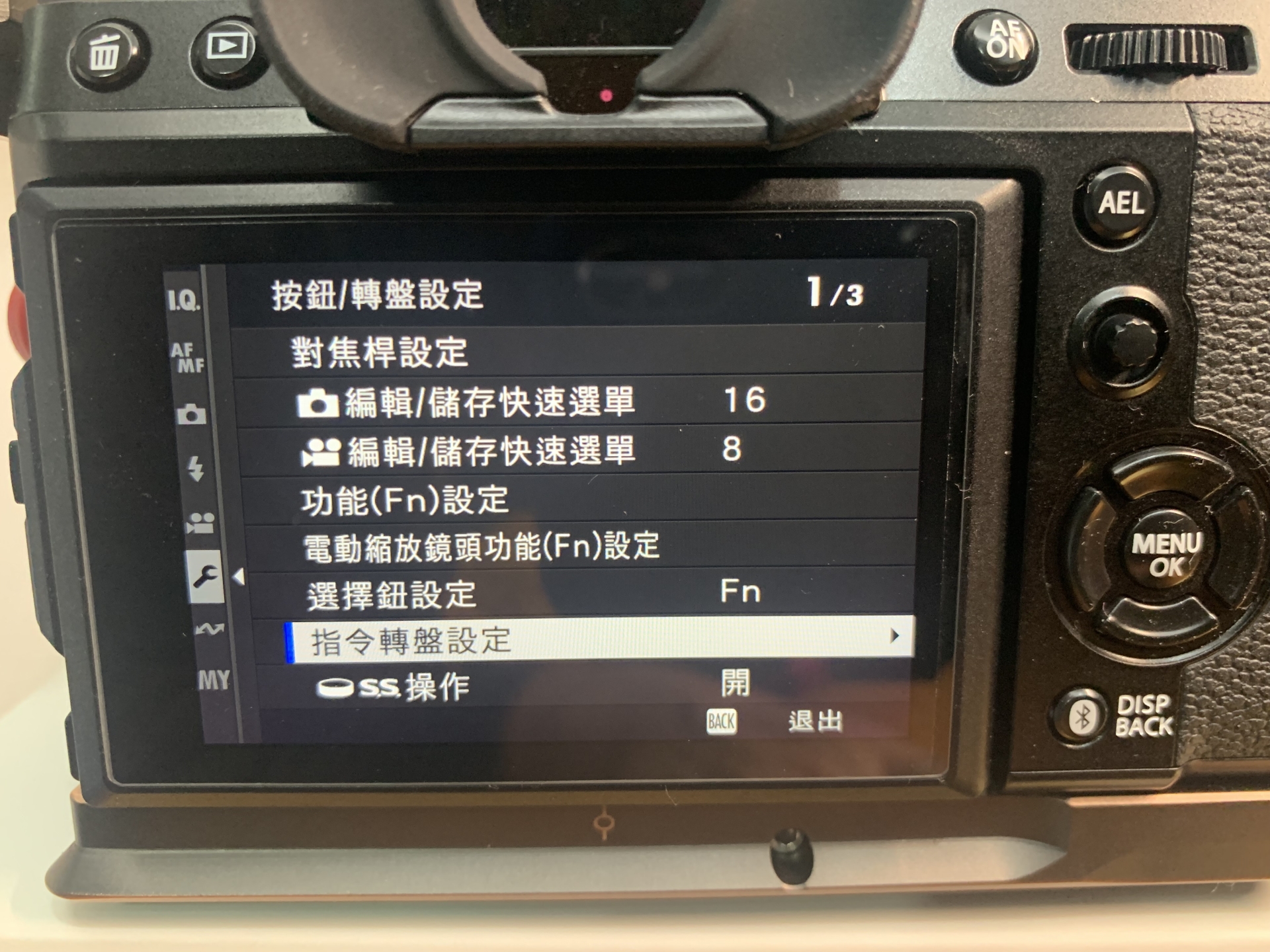 4. 設定選單,進入「設定」頁面的「按鈕/轉盤設定」將前轉盤的3個功能改為「F」、「EV」、「ISO」